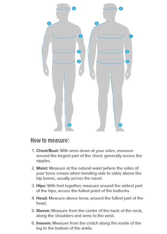 Note: our sizing charts reflect your body measurements, not the measurements of the garment itself.